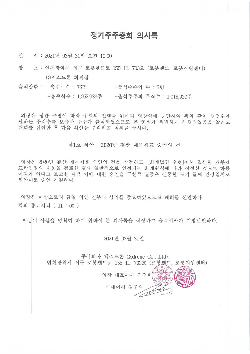 ÁÖ½Äȸ»ç ¿¢½ºµå·Ð Á¦7±â Á¤±âÁÖÁÖÃÑȸ ÀÇ»ç·Ï