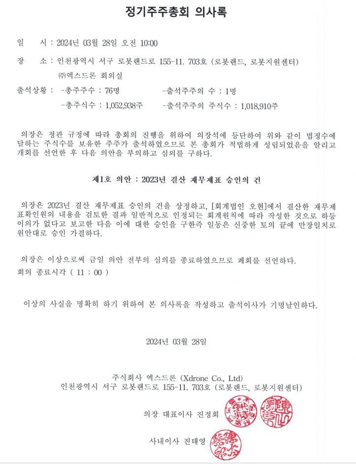ÁÖ½Äȸ»ç ¿¢½ºµå·Ð Á¦10±â Á¤±âÁÖÁÖÃÑȸ ÀÇ»ç·Ï