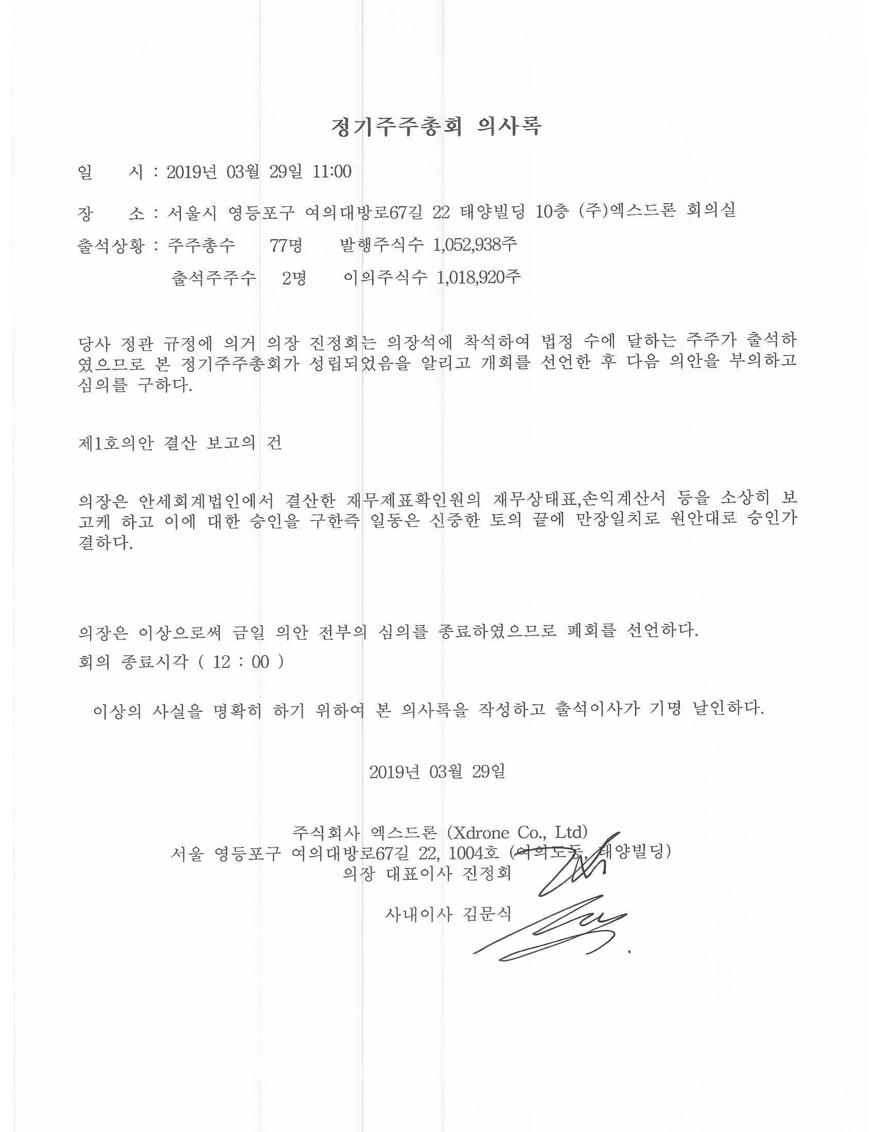 ÁÖ½Äȸ»ç ¿¢½ºµå·Ð 5±â Á¤±âÁÖÁÖÃÑȸ ÀÇ»ç·Ï